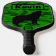 Modern Green Camo Black Wolf Silhouette Monogram | Pickleball Paddle