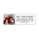 Holiday address labels feature a favourite Christmas photo with hunter / pine green and black return address and white background. Colours can be completely customised to coordinate with your photo.