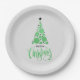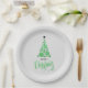 Modern green ball Christmas tree, black stars, and the words Merry Christmas in chic lettering on a pale grey background, these holiday paper plates are perfect for any Christmas occasion. MATCHING items in our collection.