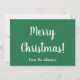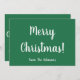 Keep it simple with this personalised, Merry Christmas design. It is in festive green and white. It has the message, "Merry Christmas!", and space for you to add your name, in white stylish typography script. On the back, as well as "Merry Christmas!", it has the text "& a Happy New Year!", your name, and space for you to add your holiday message. To personalise, simply add your text by using the personalise this text box. Check out the design editing tool to change the colour or font. Perfect for sending to your friends and family this holiday season! Merry Christmas! If you need help with personalisation, matching products, or for a custom design email: ursuladawnmoon@gmail.com