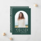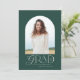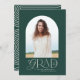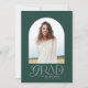 Geometric modern typography elegant green and white photo arch graduation announcement card.