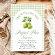 Celebrate her sweet love story with this modern Perfect Pair bridal shower invite, featuring a fresh green gingham border and watercolor pears in bloom. Perfect for farmhouse, garden, or rustic bridal showers.