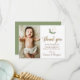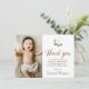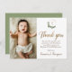 Modern Green Gold Cross baptism 1st birthday photo Thank You Card