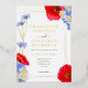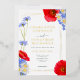 Beautiful botanical geometric gold foil hand painted watercolor summer wildflowers in green blue yellow hues. Flowers including cornflowers, daisies, poppies and forget me nots. Easy to use template with modern elegant typography script. Perfect for a unique emerald green themed summer or spring wedding. Original artwork by artist Catherine Sweetman