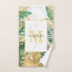 Modern Green Golden Tropical Leaves Monogram Bath Towel Set