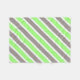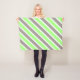Modern fleece blanket features a diagonal striped pattern in green, grey, and white.