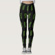 Modern Green Laurel Leaf Pattern on Black Leggings