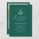 modern green and white design with elegant script, law school grad party invite template. The text and colours can be edited.