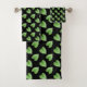 Modern Green Leaf Pattern on Black Bath Towel Set