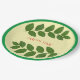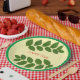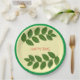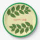 Modern green bay leaves on yellow background Paper Party Plate. Happy Time text can be personalised.
