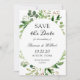 Modern Green Leaves Wreath Elegant Simple Wedding Save the Date Card.