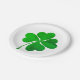 Modern Green Lucky 4 leaves heart Clover shamrock Paper Plate