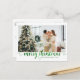 Modern Green Merry Christmas Heart Script Photo Holiday Postcard