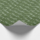 Modern christmas wrapping paper featuring a green background with the seasons greetings "merry christmas" scattered across it.