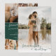 Modern minimalist winter green script wedding with 5 photos grid collage.