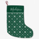 Add holiday cheer to your home with our Green Nordic Snowflake Christmas stockings. The personalised Christmas stockings feature your name in a white calligraphy script at the top with a green background and white border. The design features a pattern of white Nordic Snowflakes and motifs against a green background (or colour of your choice). The design repeats on the other side.