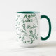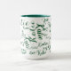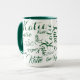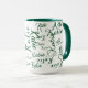 modern green on white handwritten names mug