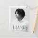 Simple graduation thank you postcard featuring the graduate's vertical photo with "Thanks" displayed in green, modern art deco lettering. Personalize the front of the photo graduation thank you postcard by adding the graduate's name, school name, and graduation year. The postcard reverses to display your return address and provides space for your typed or handwritten thank you message.