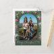 Modern Green Pink Botanical Arch Merry Christmas Postcard