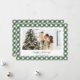 Custom green and white plaid photo holiday card featuring a green and white chequered pattern. Easily personalise this green gingham photo holiday card with your photo and family name.