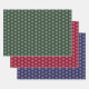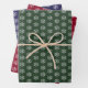 Modern green, red and blue Christmas wrapping paper sheets featuring a snowflake pattern.