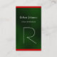 Modern Green Red Monogram Business Card