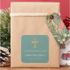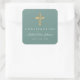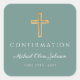 Modern Green Religious Cross Boy Confirmation Square Sticker