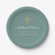 Personalised Modern Green Religious Cross First Communion Paper Plates.
