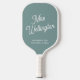 Modern Green Pickleball Paddle with the bride’s name in modern script font for a Pickleball wedding.