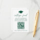 Celebrate your high school graduate’s achievement with this stylish college fund enclosure card featuring a green graduation cap at the top and "College Fund" in modern green script on a white background. Easily customise it with the graduate’s name, school name, graduation year, and personalised instructions. A convenient QR code allows friends and family to contribute effortlessly to their college fund. This elegant and practical design is the perfect addition to graduation announcements, party invitations, or thank-you cards.