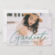 Invite guests to celebrate the grad with our stylish photo graduation invitations. The graduation invitations feature the graduate's photo with "Graduate" in a green modern calligraphy script overlay. Personalize the front of the modern graduation invite by adding the graduate's name, school name, and graduation year. The invite reverses to display your graduation party details and a trendy green and white dotted geometric pattern.