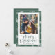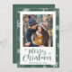 Celebrate the holiday season with these hand-lettered green photo Christmas cards featuring snowflakes.