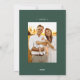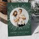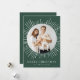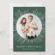 Stylish and modern holiday card featuring your photo nestled inside of a circular white sunburst frame. Personalise the sunburst Christmas card with your family name in white lettering on a green background or a colour of your choice. The back of the card displays the year and an additional photo.