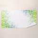 Modern bath towel set done in white with a colourful tones of green and teal tile pattern that gradually fades out. Customise this product to add your own text.