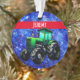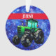 Modern Green Tractor on Blue Ornament