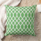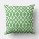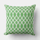 Square accent pillow design features a stylish wavy diamond trellis framework pattern. Colours are white and leaf green