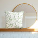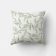 Beautiful throw pillow with hand painted watercolor pattern featuring pale sage green leaves on a clean white background.