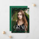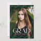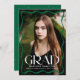 Celebrate your high school or college graduate with this modern graduation announcement, featuring a full-bleed vertical photo framed by a stylish green wavy border. The bold white "Grad" lettering makes a statement, while the graduate’s name, school, and class year add a personal touch. The back includes a horizontal photo with space for a custom message, making it the perfect way to share this special achievement with family and friends.