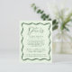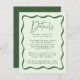 Complete your wedding suite with our Modern Green Wavy Frame wedding details card. Featuring the same retro design as our invitation collection, this card features a green wavy frame border surrounding your important wedding details such as wedding venue details, hotel accommodations, directions, and wedding website on a light green background.