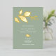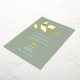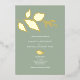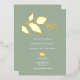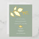 Celebrate your special day with these customisable green wedding invitations, blending elegant charm with a modern minimalistic design. Featuring a stunning real gold foil leaf border over a rich sage green background, this design adds a sophisticated touch to your wedding stationery.