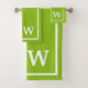 modern Green White Personalized Monogram Bath Towel Set