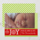Modern green, white stripes JOY Christmas Groupon Holiday Card