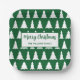 Modern Green White Tree Pattern Christmas Party Paper Plate