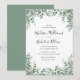 Elegant, modern wedding invitation featuring your wedding details with a top and bottom border of green watercolor leaves and foliage. The reverse side features a solid green background. Designed to coordinate with our Modern Greenery wedding collection.