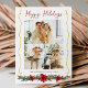 Modern Greenery Gold Happy Holidays 3 Photo Holiday Card