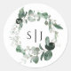 Modern Greenery White Monogram Wedding Sticker