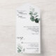 This modern greenery white wedding all in one invitation design features easy mix and match coordinating styles in black and white with delicate greenery elements adding graceful flourish around simple sophisticated typography and lovely minimal calligraphy script. The watercolor eucalyptus and other botanical leaves arch beautifully throughout, with dark emerald fading in an ombre effect to light mint green - to add just enough of a classy touch of rustic nature to a neutral contemporary backdrop. This gorgeous collection would perfectly create an air of polished elegance for your formal or casual dream wedding or other special event. As with all of our designs, if you have any questions or special requests, please reach out.