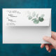 This modern greenery white wedding envelope design features easy mix and match coordinating styles in black and white with delicate greenery elements adding graceful flourish around simple sophisticated typography and lovely minimal calligraphy script. The watercolor eucalyptus and other botanical leaves arch beautifully throughout, with dark emerald fading in an ombre effect to light mint green - to add just enough of a classy touch of rustic nature to a neutral contemporary backdrop. This gorgeous collection would perfectly create an air of polished elegance for your formal or casual dream wedding or other special event. As with all of our designs, if you have any questions or special requests, please reach out.