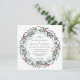 Pretty watercolor greenery wreath with a light dusting of snow. Sets the scene for a destination northern hemisphere wedding in winter holiday season. All text can be changed. The reverse is in contrasting pine green with a simple RSVP by - in white. Wintery seasonal colours. Tip: You can change the background colours and text colours to suit your style. https://www.zazzle.com/store/confettiandcake