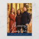 Merry Christmas. Celebrate the season with this family photo, cute script , Navy Blue layover postcard It is fully customisable and personalised with your own greeting messages. Please add your return address for easy mailing. It is simple, easy, yet modern minimalist and festive. This is the perfect postcard for sending your holiday wishes. Layover Calligraphy.